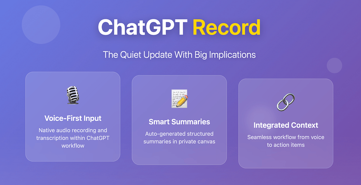 ChatGPT has introduced a new Record Mode in its desktop app, giving users a simple way to capture and summarize meetings, lectures, and conversations — all without relying on outside tools like Fireflies or Otter. This is especially useful for companies with strict privacy policies or teams that prefer not to invite transcription bots into their calls.